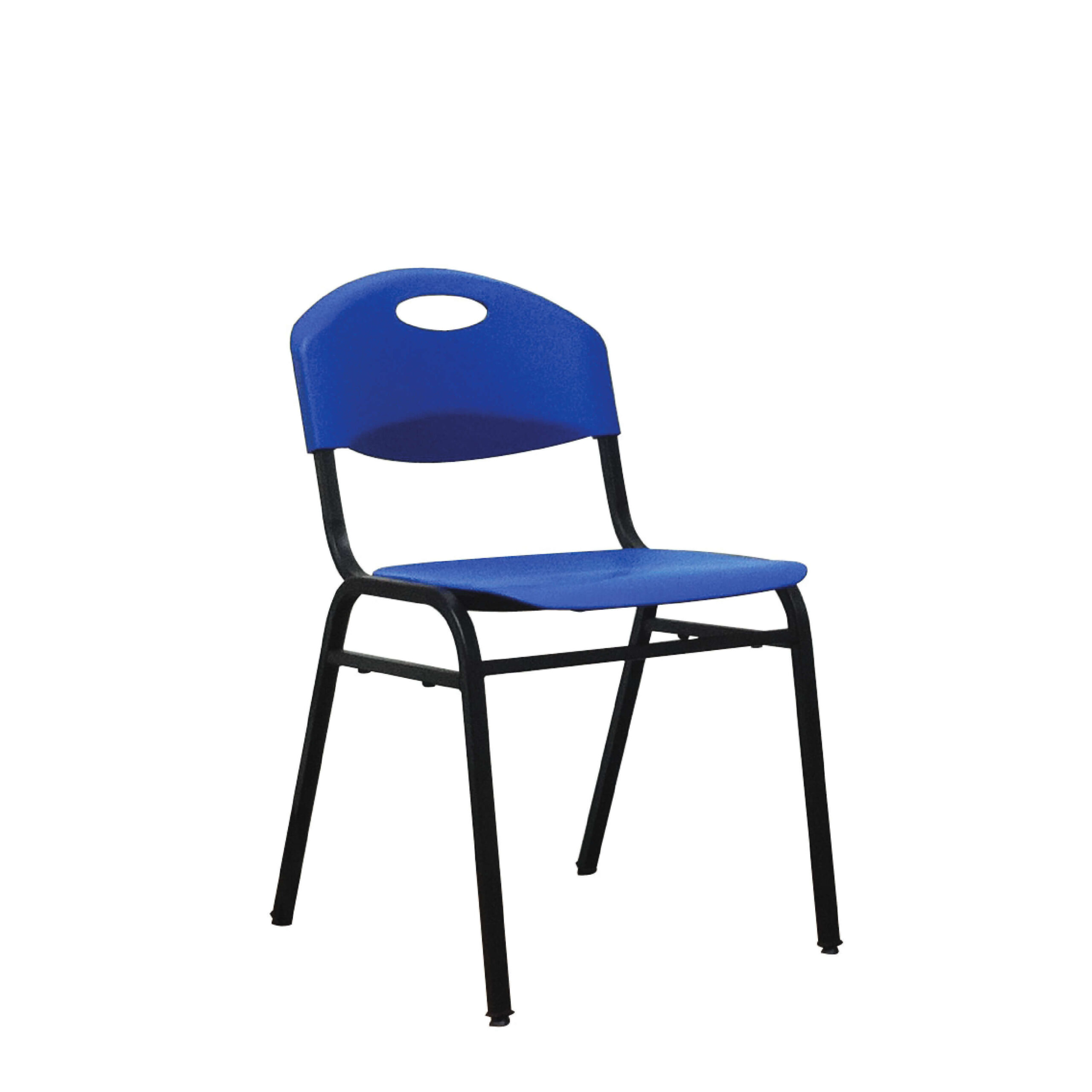 Durable and affordable high-quality plastic chair. 4 legged black metal base. Seating and backrest are made of plastic. IT comes in 2 colors of red and blue. Contact us for more information.